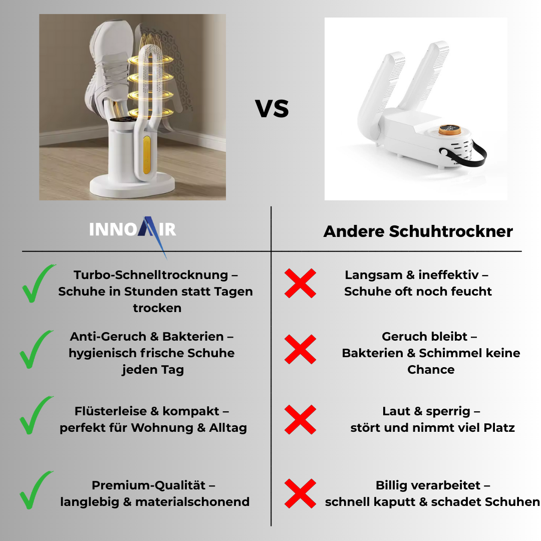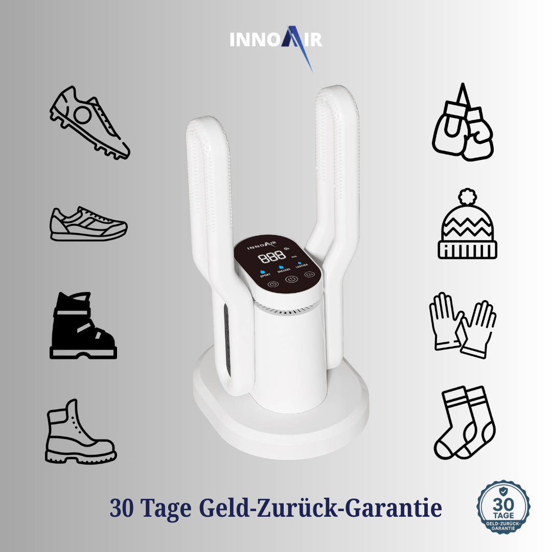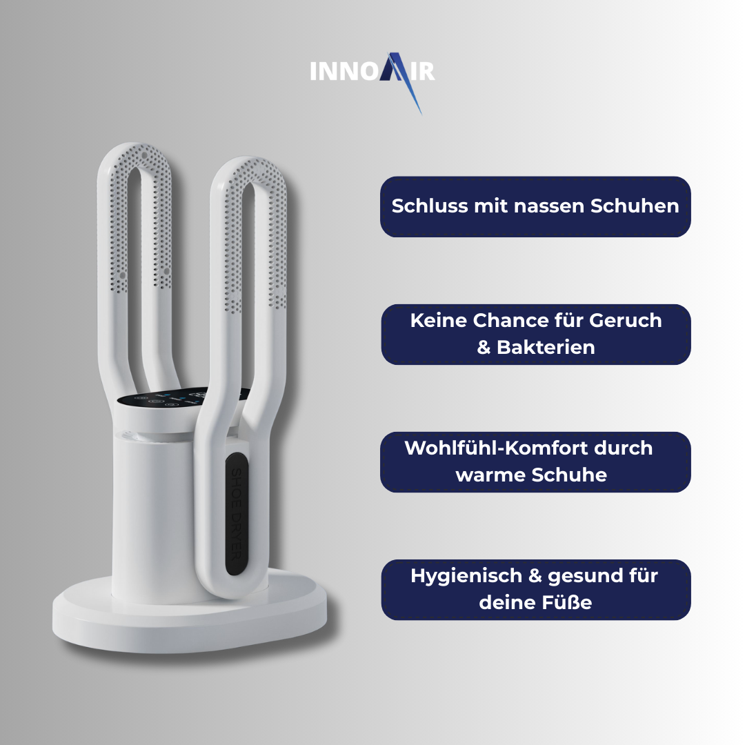 Erleben Sie den Unterschied mit unserem innovativen Schuhentfeuchter: Schnelle, effiziente Trocknung, hygienische Pflege und modernste Technologie für ein besseres Schuhgefühl.